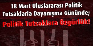 18 Mart Uluslararası Politik Tutsaklarla Dayanışma Gününde; Politik Tutsaklara Özgürlük!