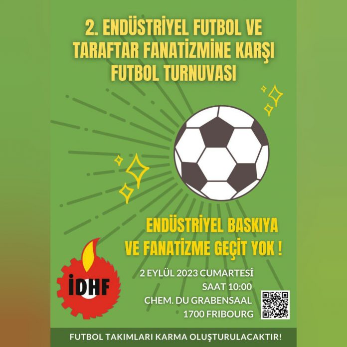 İsviçre Demokratik Hakları Federasyonu tarafından düzenlenen 2. Endüstriyel Futbol ve Fanatizmle Karşı Futbol Turnuvası'na davetlisiniz!