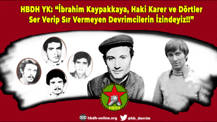 Komünist Önder İbrahim Kaypakkaya, Haki Karer ve Dörtleri anan HBDH YK, “Onların devrim ideallerinin sürdürücüleri olarak, devraldığımız bayrağı devrim kalelerinin burçlarına çekmek boynumuzun borcu ve yeminimizdir. Devrim için dövüşene, düşene bin selam. Dörtlerin meşalesi, Kaypakkaya’nın direnişi birleşik devrimimizde zafer andımızdır!” dedi.