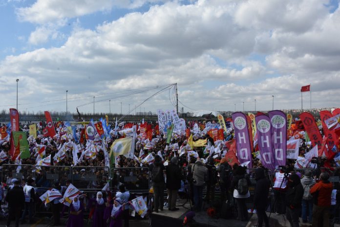 Binlerce kişi İstanbul’da Newroz’un kutlandığı Yenikapı Meydanı’na akın etti. Devrimci, demokrat yurtsever kurumlar, sendikalar, DKÖ’ler alanda flamaları ve sloganlarıyla halaylara durdu.