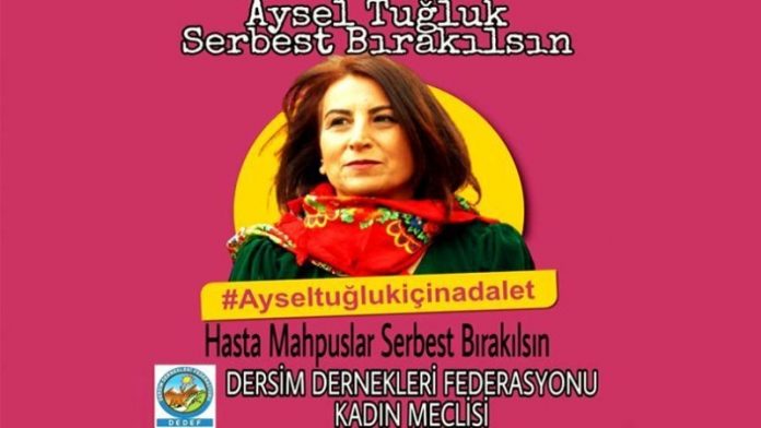 Dersim Dernekleri Federasyonu (DEDEF) Kadın Meclisi, Kandıra 1 No’lu F Tipi Hapishanesi’nde tek kişilik hücrede tutulan hasta tutsak HDP eski Eş Genel Başkan Yardımcısı Aysel Tuğluk’un serbest bırakılması için yazılı bir açıklama yayınladı.