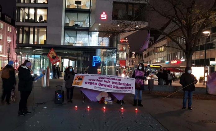 Demokratik Kadın Platformu Ulm bileşenleri şehir merkezinde “25 Kasım Kadına Yönelik Şiddete Karşı Uluslararası Mücadele Günü” nedeniyle gösteri düzenledi.