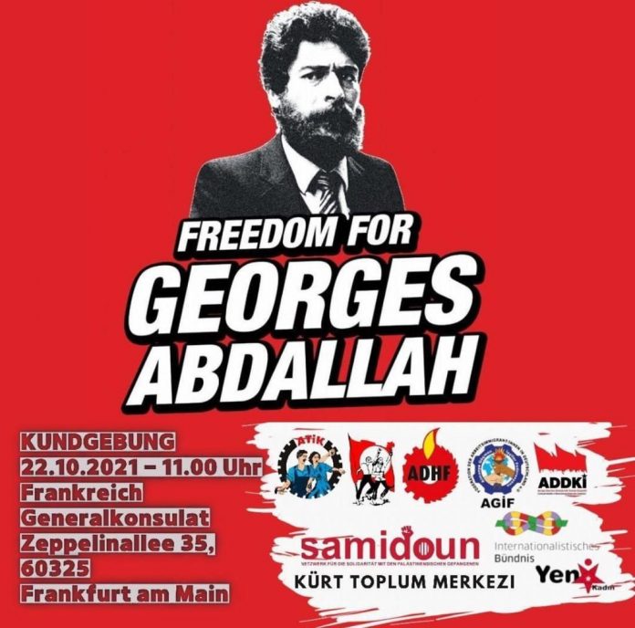 Aralarında AGİF, ATİK, ADHF, Kürt Toplum Merkezi’nin de bulunduğu kurumlar, Almanya’nın Frankfurt kentinde, “Georges Abdallah’a Özgürlük!” eylemine çağrı yaptı.