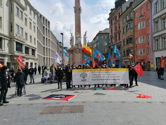 Avusturya İnnsbruck/ Tirol Demokratik Güç Birliği ve Avusturyalı Antifaşist kurumlar Innsbruck’da, 18 Nisan Pazar günü bir miting gerçekleştirdiler. Bu mitingle ADGB’nin başlattığı “Faşizmi Birlikte Yeneceğiz” kampanyasına start verilirken, aynı zamanda HDP’ye yönelik kapatma girişimleri ve Innsbruck’da ki ırkçı faşist örgütlenmeler protesto edildi.