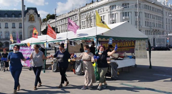 Avrupa Kadın Dayanışması’nın Viyana bileşenleri olan YENİ KADIN, SKB, ADKH, AVESTA, KOMÜNTERN tarafindan, 12 Eylül Cumartesı günü, Rojava Kadın Devrimi ile dayanışma amacıyla bir festıval düzenlendi. Avrupa Kadın Dayanışması bileşenleri, sabahın erken saatlarinde stantlarını kurup pankart ve bayraklarını açtılar. AKD dışında yerli ve göçmen birçok kadın örgütünün de, açtıkları kendi renklerini yansıtan pankart, poster ve bayraklarla Schwerzenbergplatz Meydanı tam...