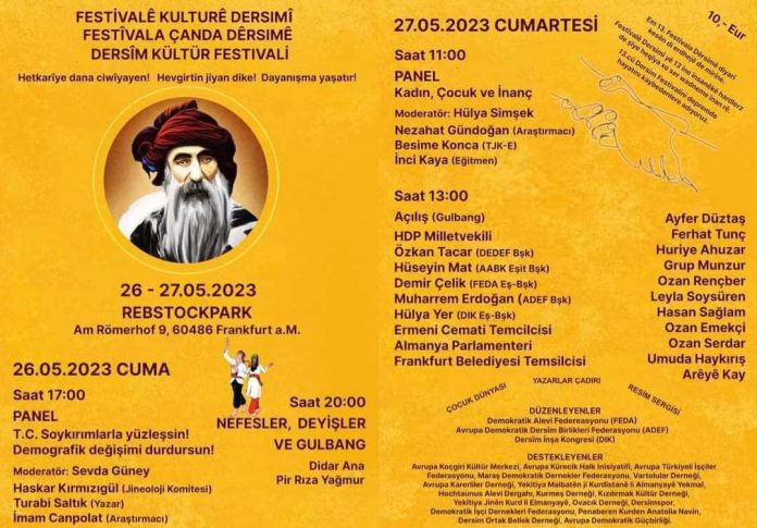 13. Avrupa Dersim Kültür Festivali 26-27 Mayıs 2023 Tarihlerinde Frankfurt’da gerçekleşecektir.