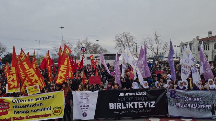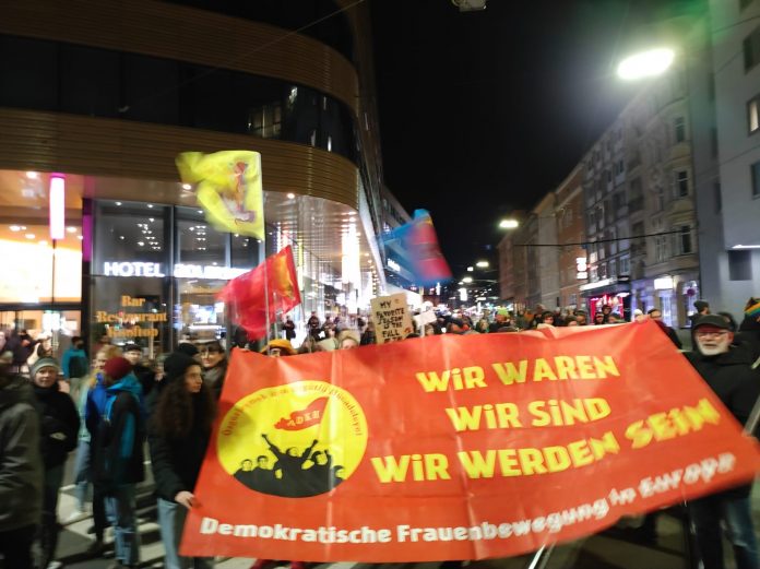 Avrupa Demokratik Kadın Hareketi de kendi pankart ve bayrakları ile yürüyüşlerde yerini aldı. Yürüyüşlerde Genç kadın kitlesi yoğun bir katılım sağladı.
